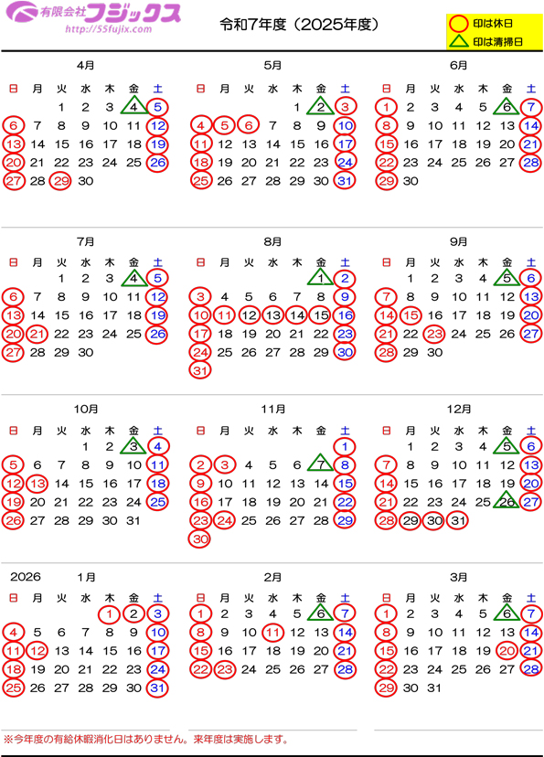 令和7年度 年間営業カレンダー ダウンロード(PDFファイル:約85KB)