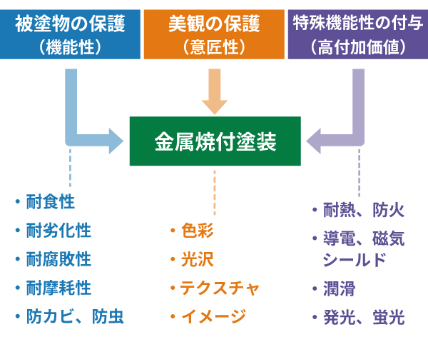 過酷な使用条件や特殊な要求に応えるため、一般的な塗装では実現できない特別な性能を金属表面に加えます。