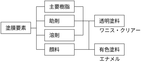 | 塗装法別分類 | 刷毛塗り塗料、吹き付け塗料、電着塗料、粉体塗料、他 |